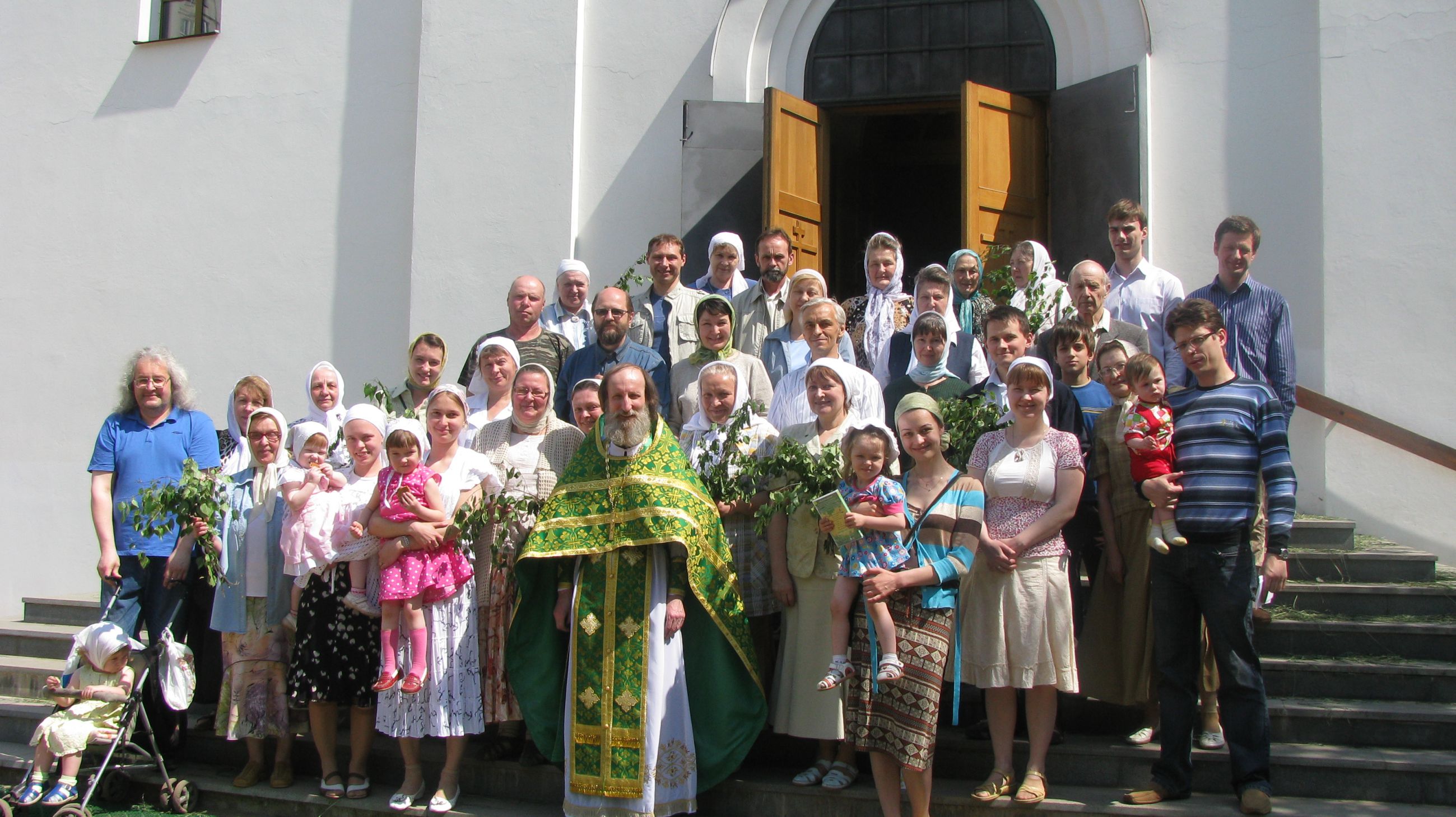 По традиции каждый год в день праздника Святой Троицы после богослужения, после вечерни, после великих коленопреклонных молитв святителя Василия Великого мы всем приходом фотографируемся на ступеньках нашего храма.