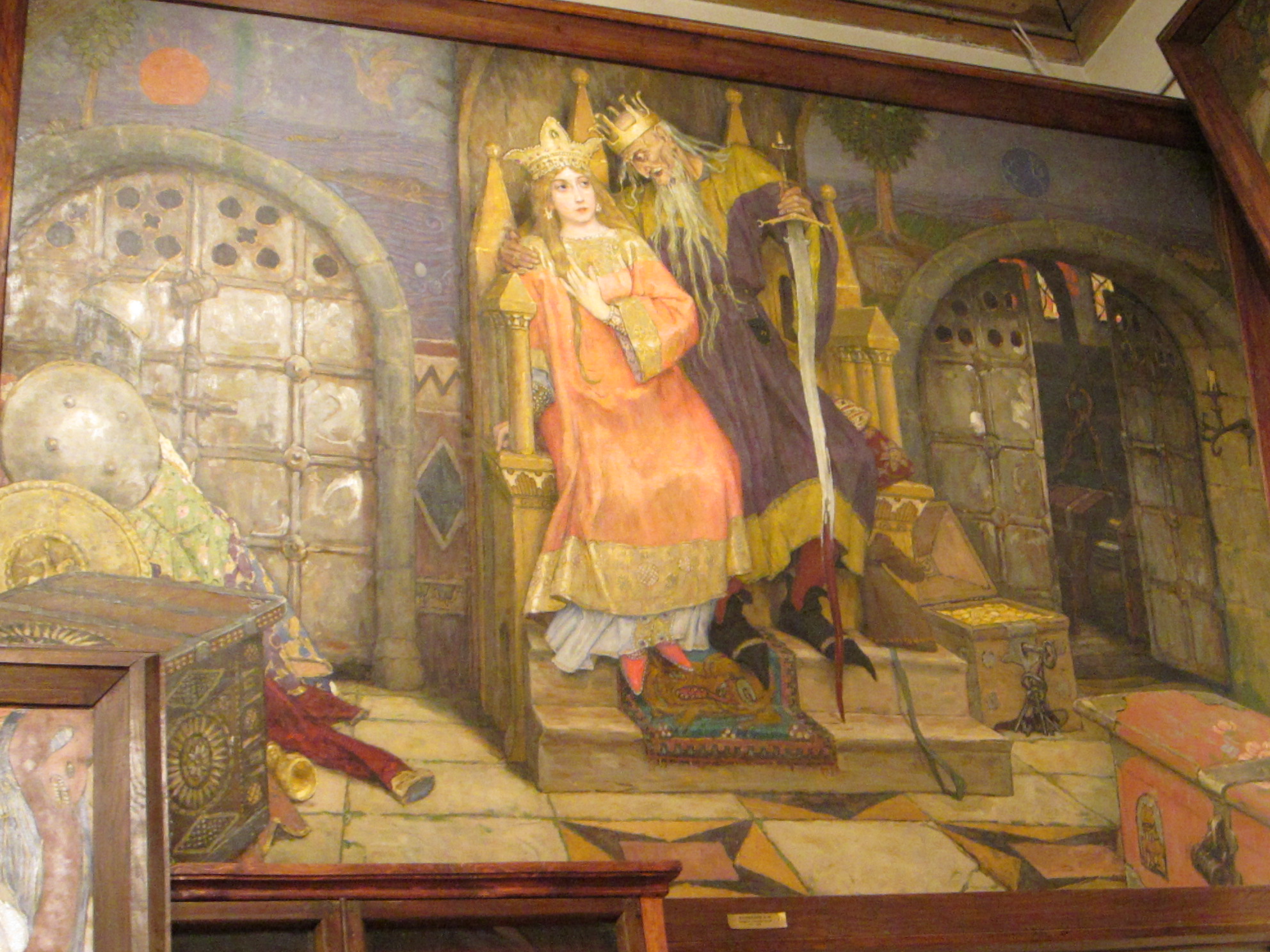 Во всех комнатах дома мы видели замечательные иконы, поразительные картины: портреты близких людей художника, изображения сказочных героев... Увидели картину, где искуситель Кощей искушает царевну – чистую душу. Если на Родину напал враг, ее надо защищать. Царевна символизирует матушку-Русь.