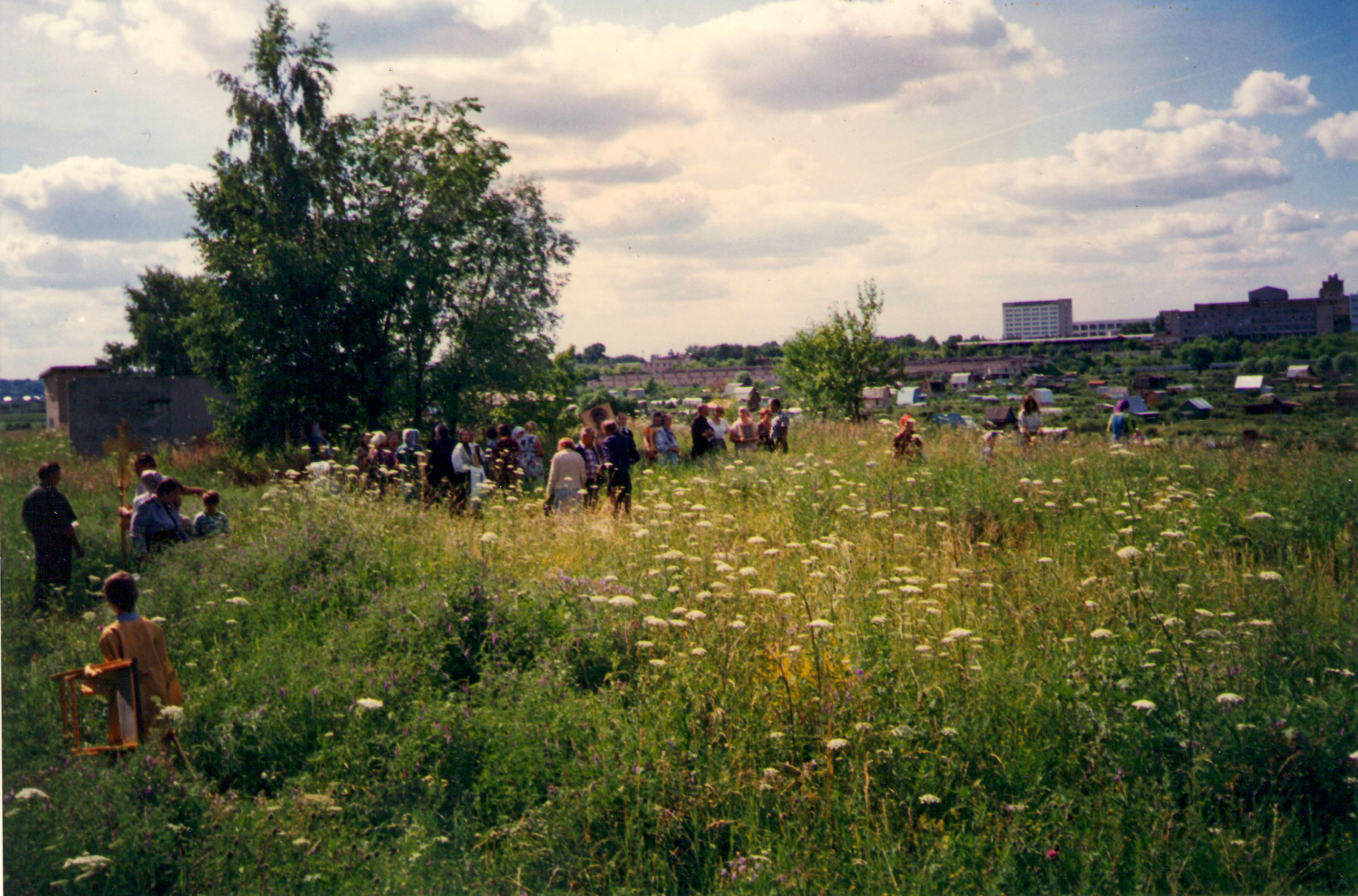 День был жаркий, и мы для молитвы перешли по высокой траве под дерево, в тень. Как потом оказалось, стояли прямо рядом с основанием бывшего храма.