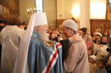Возлюбленные братья-архипастыри, уважаемые Виктор Валентинович, всечестные отцы, дорогой и любимый отец настоятель, возлюбленные братья и сестры! Каждый раз, когда я посещаю приходы и на Литургии слышу полагающееся в этот день Евангелие, то стараюсь мысленно проникнуть в его значение для этого места, для этого храма, для этой встречи. Евангелие, которое мы сегодня слышали за богослужением (см.: Лк. 8:41-56), как раз относится к событию, которое мы с благодарением Богу торжественно празднуем.
